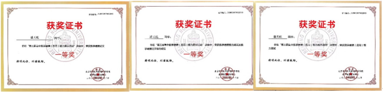 在近日结束的第三届高中数学建模(应用)能力展示活动中,球盟会依托“英才计划”,由经理韩德仁教授牵头,指导北京市陈经纶中学员工潘天屹完成作品“智能机器人停车泊位最优路径的研究分析”,斩获数学建模(应用)能力测试一等奖、数学建模论文一等奖和综合成绩一等奖。