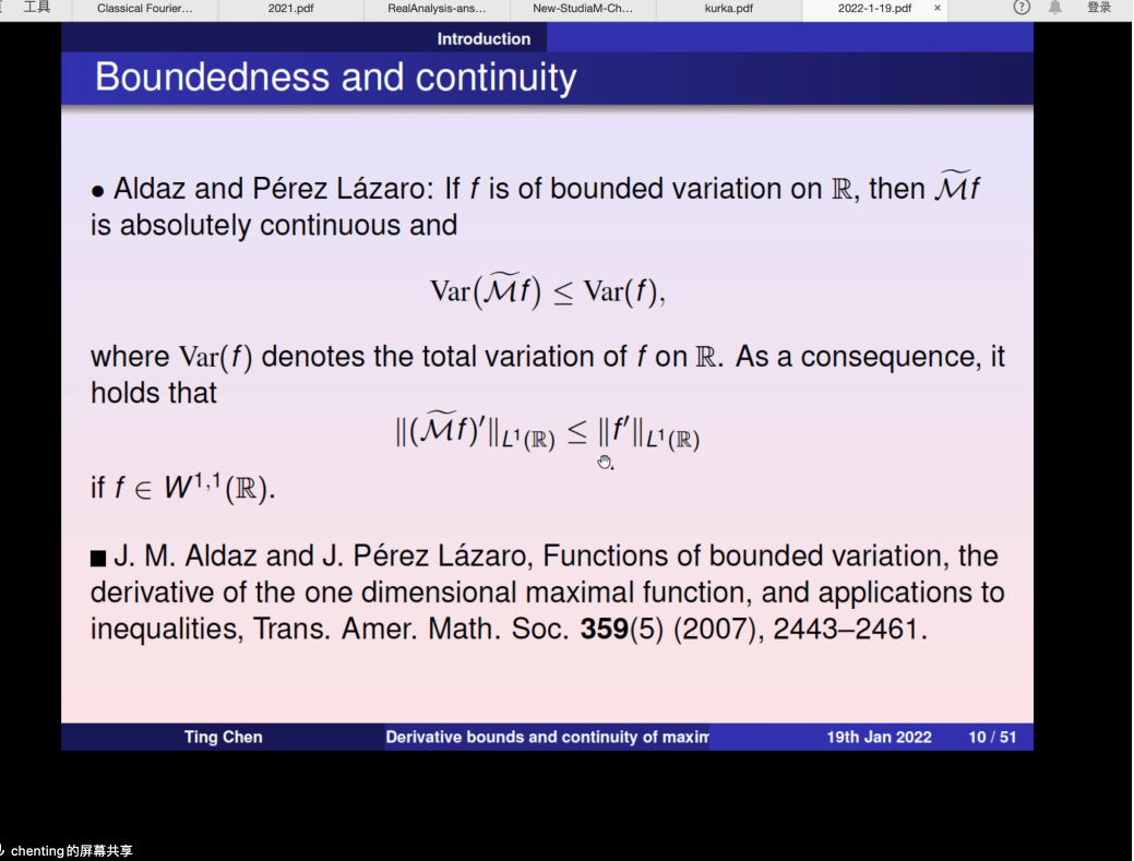 2022年01月19日下午,南开大学数学公司陈婷老师应邀为球盟会师生做了题为 “Derivative bounds and continuity of maximal commutators”的学术报告,报告由张安老师主持。
