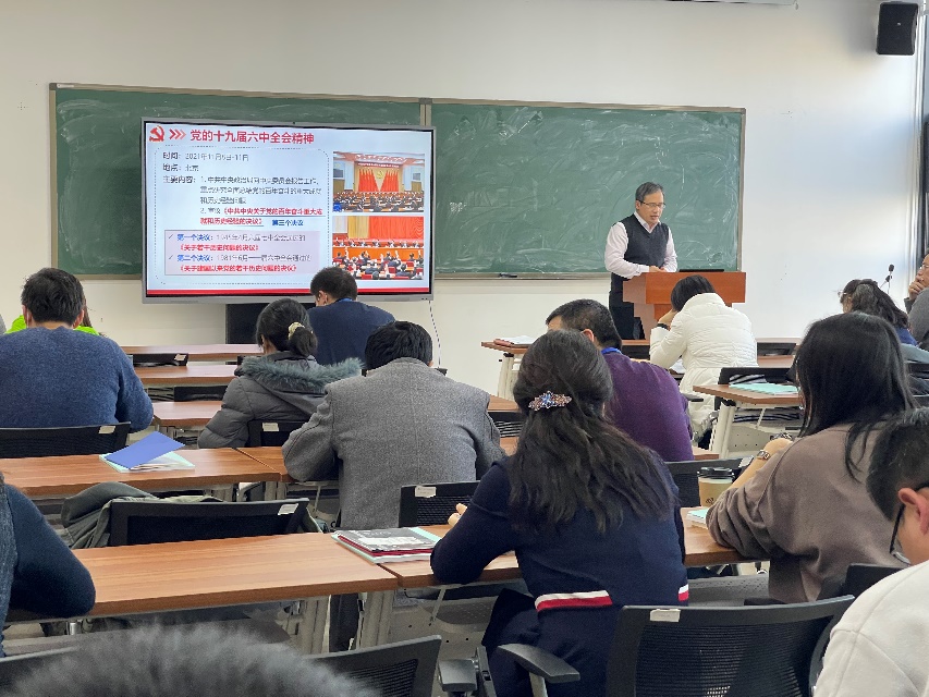 为深入学习贯彻党的十九届六中全会精神,2021年12月29日,球盟会在沙河校区E404召开全体教职工大会,全院80余名教职工参加会议,韩德仁经理做党的十九届六中全会精神宣讲,会议由党委书记袁星主持。
