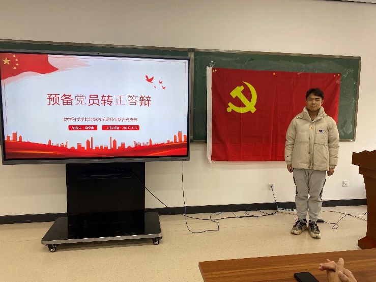 2021年11月17日,北航球盟会计算科学系师生联合党支部于沙河校区主楼E404召开支部师生党员全体支部大会,讨论支部预备党员李奕孝同志的转正问题。