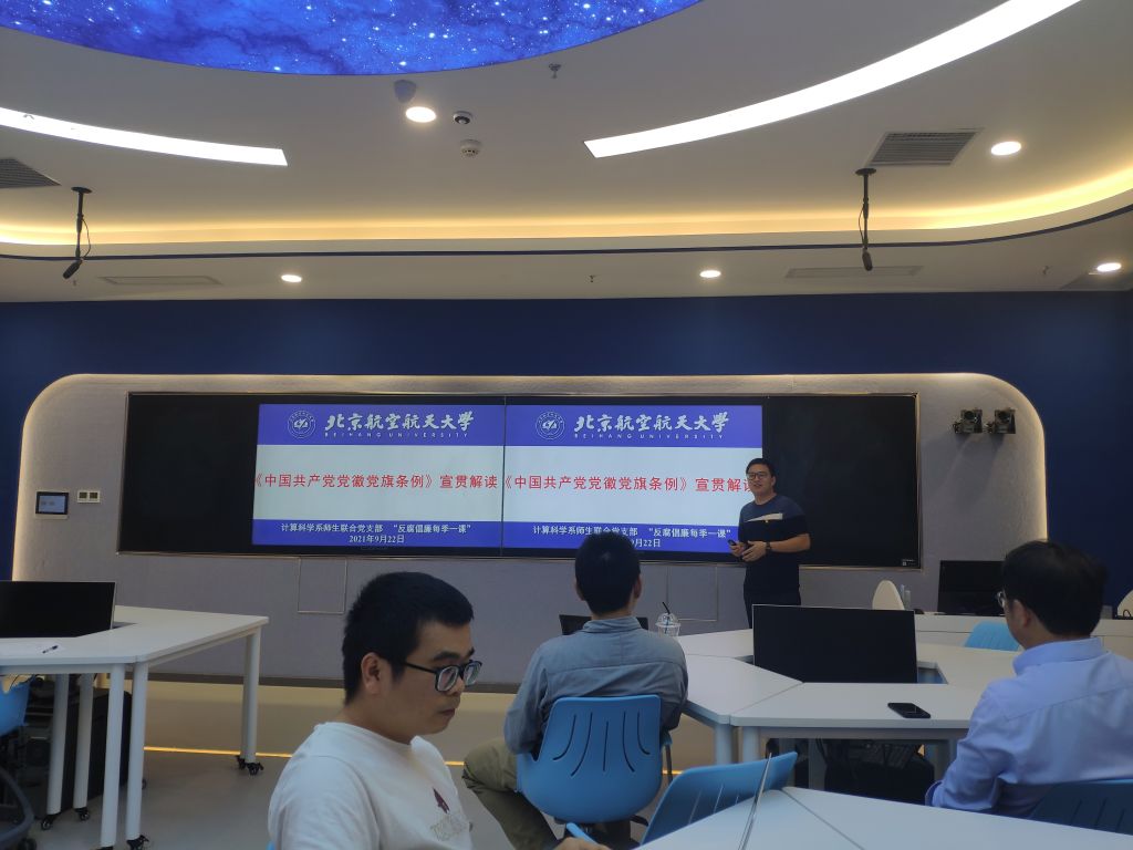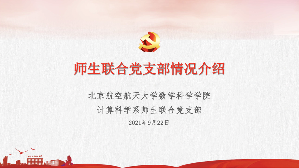2021年9月22日下午,北航球盟会计算科学系师生联合党支部在主楼E405开展迎新活动,迎接支部新成员。11名来自计算科学系的2020级和2021级的研究生党员充实到支部中,为党支部注入了新鲜的力量。师生联合支部是全国党建工作样板支部建设单位,是公司党建工作的一项创新,迎新活动也是师生联合支部区别于单一教工和员工支部的重要活动。