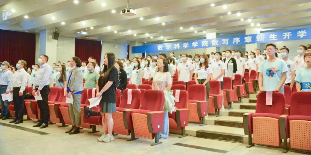 2021级本科强基新生代表刘峻池、2020级本科生新生代表郭芝伊、2021级研究生新生代表张翔宇、优秀员工代表许卓颐同学依次进行发言。他们表达了立志投身于数学事业的决心,加强自身能力,不断学习,不断超越,勇担新时代的使命与责任。
