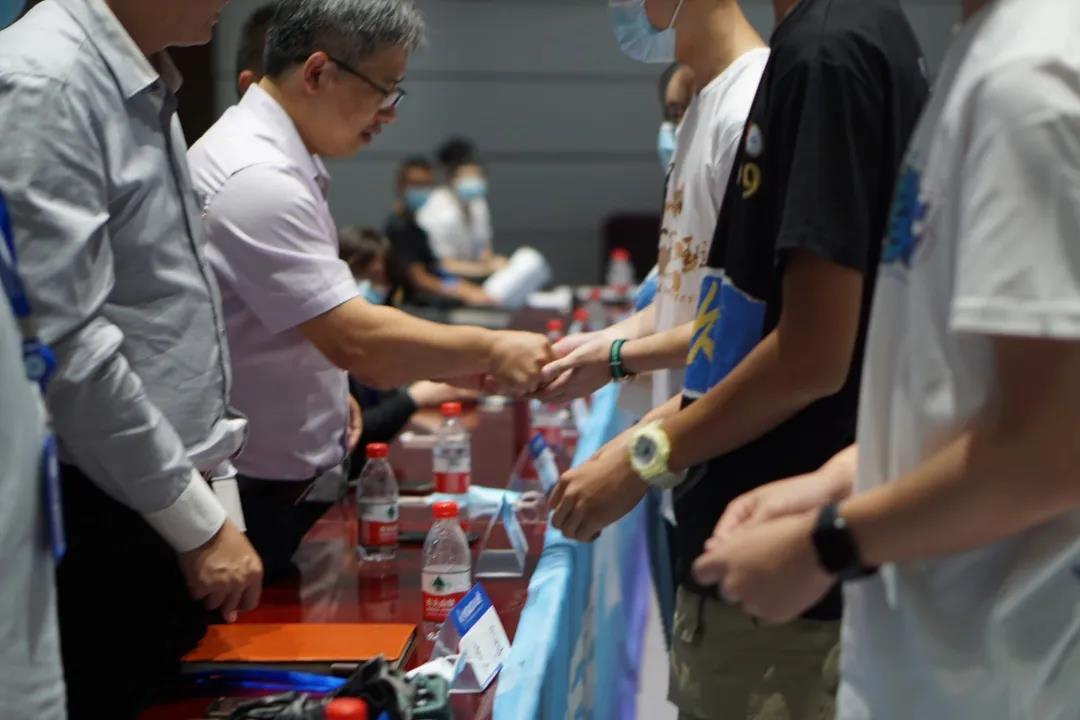 在开学仪式的最后,公司领导为新生代表授予院徽。