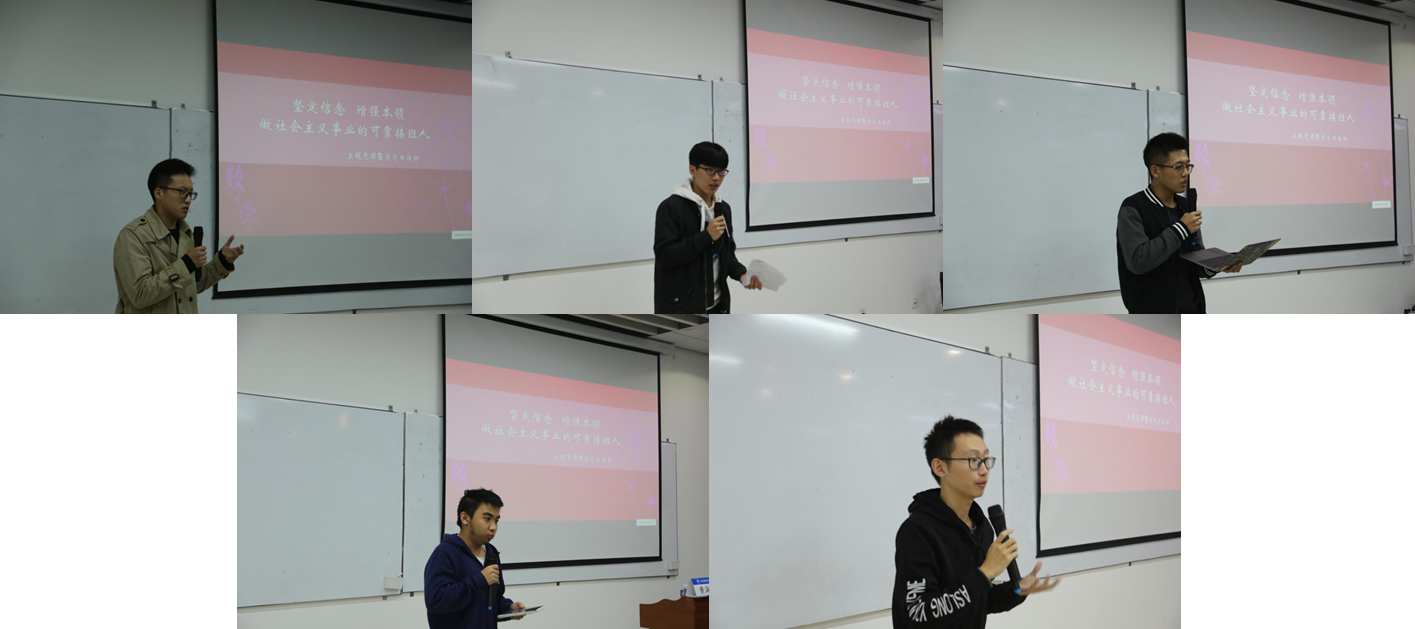 主题党课后,谭镇涛、张翔宇、郭志鹏、王文昊、张造诣5名员工代表依次上台发言,和同学们分享了自己的学习经验、科研经历、学业规划及成长历程。活动最后,黄海军副董事长对同学们的发言进行认真点评并耐心回答了现场同学的提问。