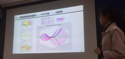 2019年4月24日下午,公司应用数学系邀请了北京科技大学储继迅博士在主213给公司教师做了”双曲抛物面”的微课展示,并交流了团队微课制作以及参赛方面的心得和体会。