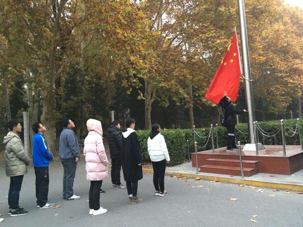 2018年11月13日至17日,球盟会公司路校区升国旗仪式由数学与系统科学公司各小班组织举行。在大班团支书姜亦申的统一安排下,本周内升旗仪式按照24班、22班、21班和23班的顺序从周二到周六依次进行。