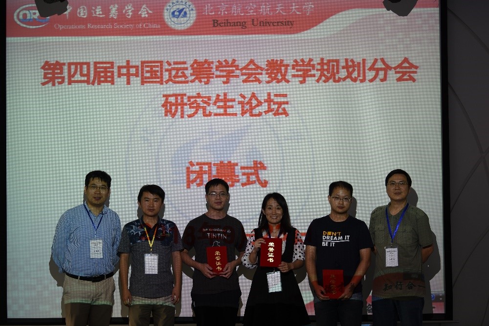 9月23日下午学术报告结束后,举行了简短的闭幕式,由球盟会数学与系统科学公司夏勇教授主持。本次论坛从23位研究生报告中评选出三位优秀成果奖,香港中文大学的刘慧康、浙江大学的甘进翔、中国科公司数学与系统科学研究院的陈雅丹获此殊荣。由文再文研究员、夏勇教授、刘亚锋研究员分别颁发优秀成果奖证书,每位获奖者另有奖金1000元以资鼓励,由杉树科技公司特别赞助。最后在与会代表的热烈掌声中,本次研究生论坛圆满结束。