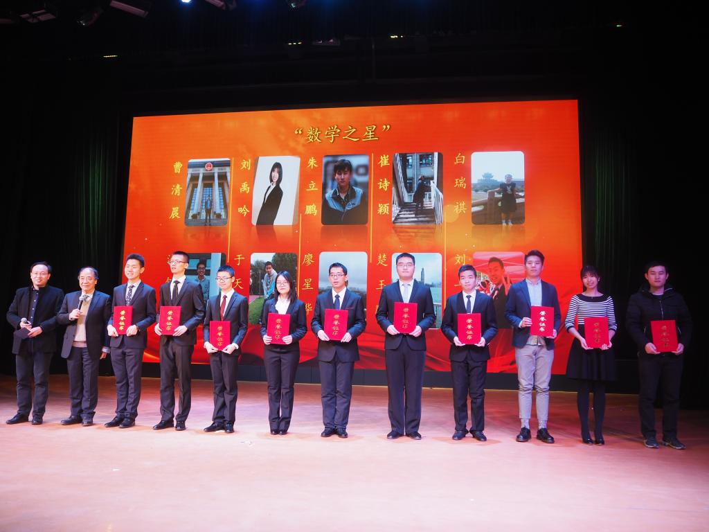 在此起彼伏的热烈掌声和欢呼声中,“数学之星”的系列奖项——文体之星、志愿服务之星、社会工作之星、学习之星、科技实践之星、明星团队由嘉宾们一一揭晓并颁发证书。