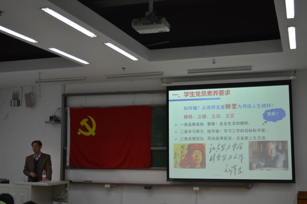 12月24号下午,公司沙河校区党委书记陈志英教授莅临公司员工党校,为第三期入党积极分子培训班学员带来了一堂关于自我素质提高、党员选拔的标准和同学们应该努力方向的精彩党课。一同出席的还有公司分党委副书记王菲老师,本科13级辅导员杨亮,14级辅导员王鑫。王菲老师主持此次党课。