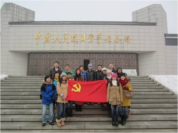 12月15日, SY11092党支部的全体党员、积极分子及部分群众一行20人来到位于丰台区宛平城城内的抗日战争纪念馆进行参观学习,并在发生了“七七事变”的卢沟桥遗址上回顾了那腥风血雨的历史。 前往的路上支部成员先学习抗日战争的相关资料并进行知识竞赛,初步了解了抗日战争历史。到达目的地后,首先参观了中国人民抗日战争纪念馆,整个纪念馆浓缩了中华民族从1931到1945这14年间的抗战历程。党员与积极分子们看到了包括台港澳同胞、海外侨胞在内的全国各族人民,在中国共产党员倡导建立的抗日民族统一战线旗帜下,以国共合作为基础,共同抵抗日本帝国主义侵略的历史。参观后全体党员在党支书—赵明同志的带领下在众英雄雕像面前庄严地重温了入党誓词,在誓词中感受历史与责任的沉重,坚定了自己做一名优秀共产党员的决心。