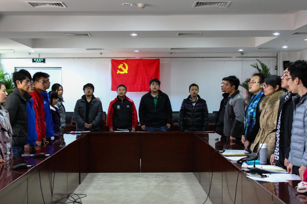 随后支部党员、数学与系统科学公司2011级辅导员李轩昂带领黄炎鹤等13名同志面对党旗庄严宣誓,发出了为共产主义奋斗终身的誓言。