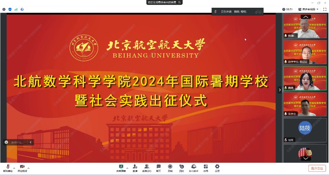 暑期公司带队教师代表李田田、程乾分别介绍了香港理工大学暑期公司和俄罗斯新西伯利亚国立大学暑期公司的整体安排,就出国出境注意事项进行了提醒,并强化了行前安全教育。数学与应用数学(强基计划)2022级员工王皓田、2023级员工王誉翔作为暑期公司员工代表发言,他们表示将严格遵守出行纪律,认真完成课程学习,保证暑期公司时间充实而有意义。