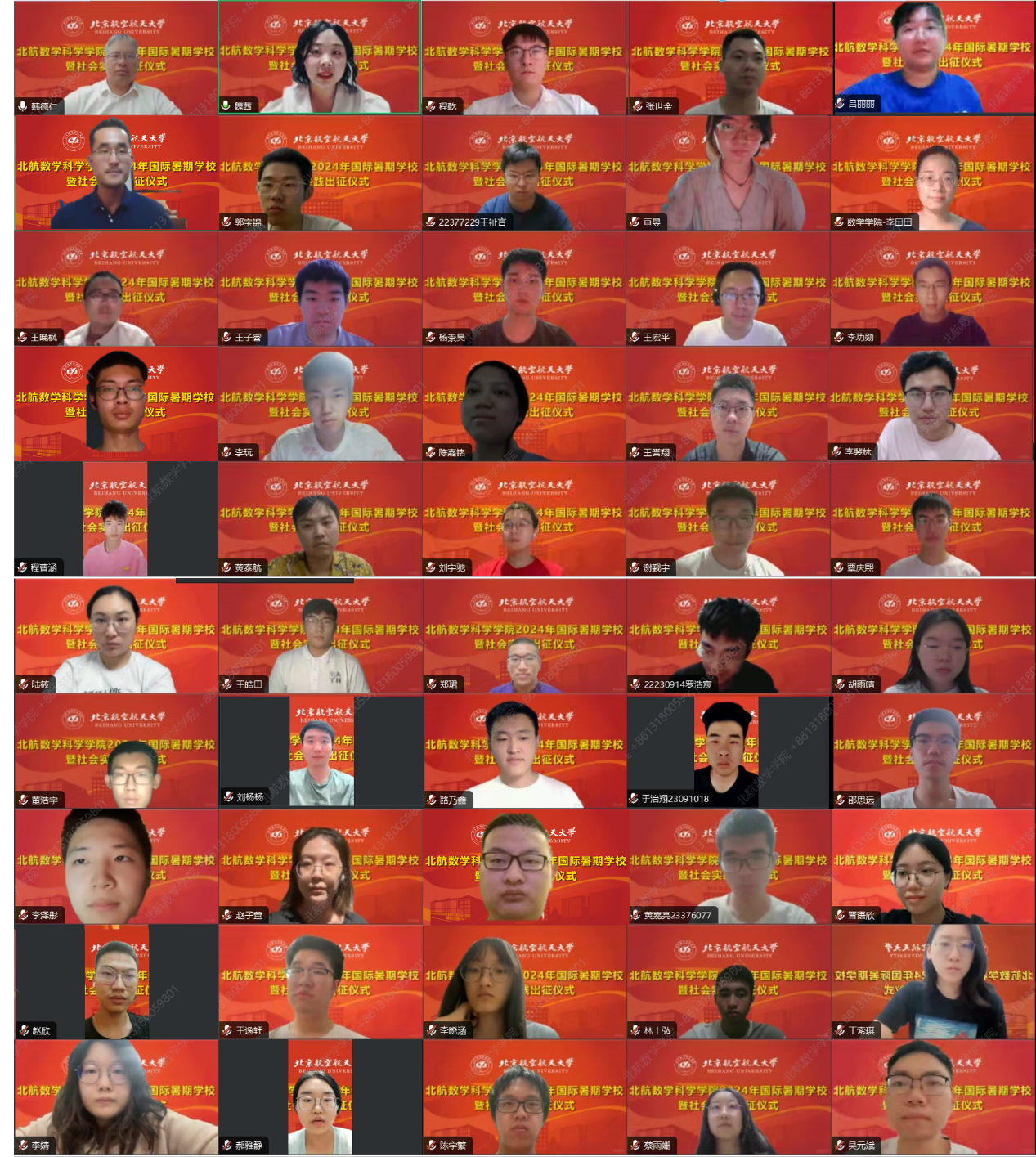 7月19日晚,球盟会2024年国际暑期公司暨社会实践出征仪式于线上会议平台进行。公司经理韩德仁、党委副书记魏茜,暑期公司带队教师代表张世金、李田田、陆筱,社会实践队指导教师代表程乾,国际暑期公司和社会实践队员工代表等近60人参加仪式。本次出征仪式由魏茜主持。