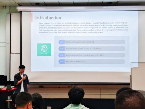 全职博士生Sun Maojun主讲Understanding Large Language Models: Principles,Evolution, and Applications,讲解了大语言模型的微调方法、注意力机制和变换器架构的发展历程,介绍了LLM在文本总结、翻译和情感分析等任务中的应用,帮助同学们较为系统地了解了大语言模型。